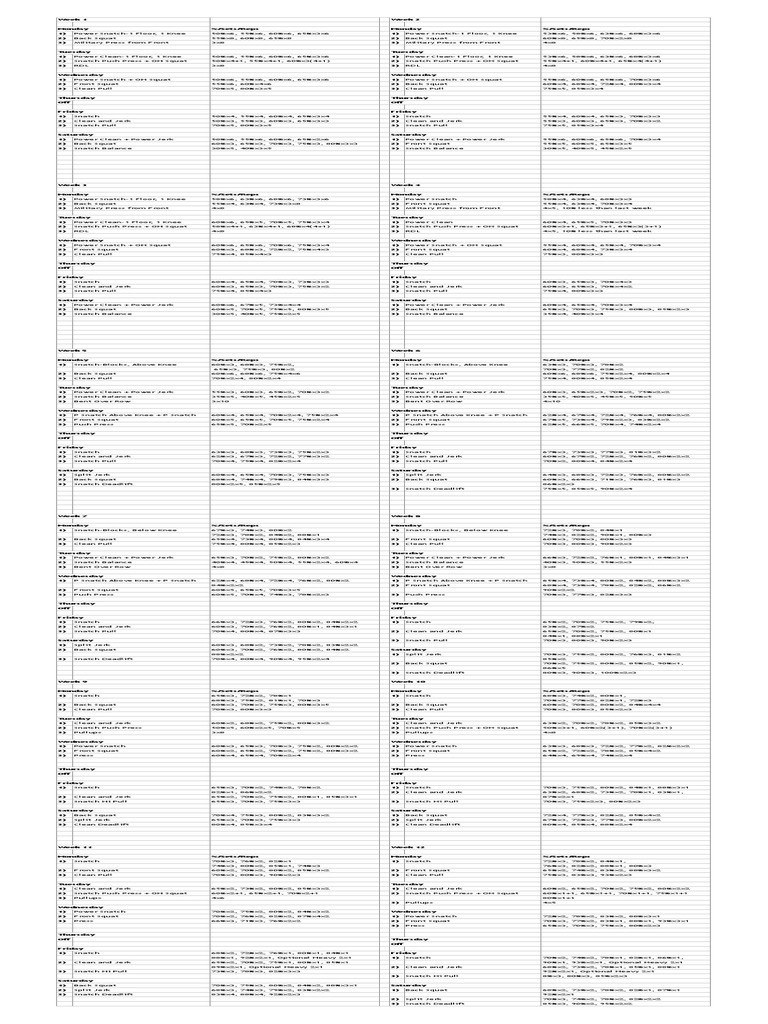 These spreadsheets are based off of an interpretation of his work and are not officially endorsed or associated with him in any way. For example you might do triples in the snatch clean and jerk on week 1 doubles on week 2 and singles on week 3 increasing the weight by 5. Building a basic level of fitness is key for long-term growth and injury.