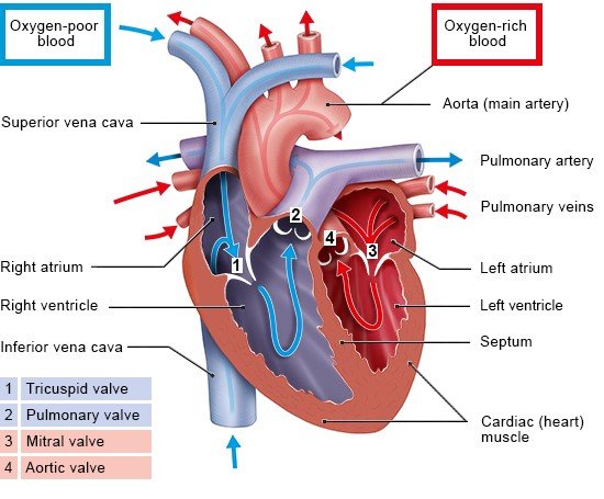 It keeps all the blood in your circulatory system flowing. The pumped blood carries oxygen and nutrients to the body while carrying metabolic waste such as carbon dioxide to the lungs. The chambers are separated by a wall of tissue called the septum.